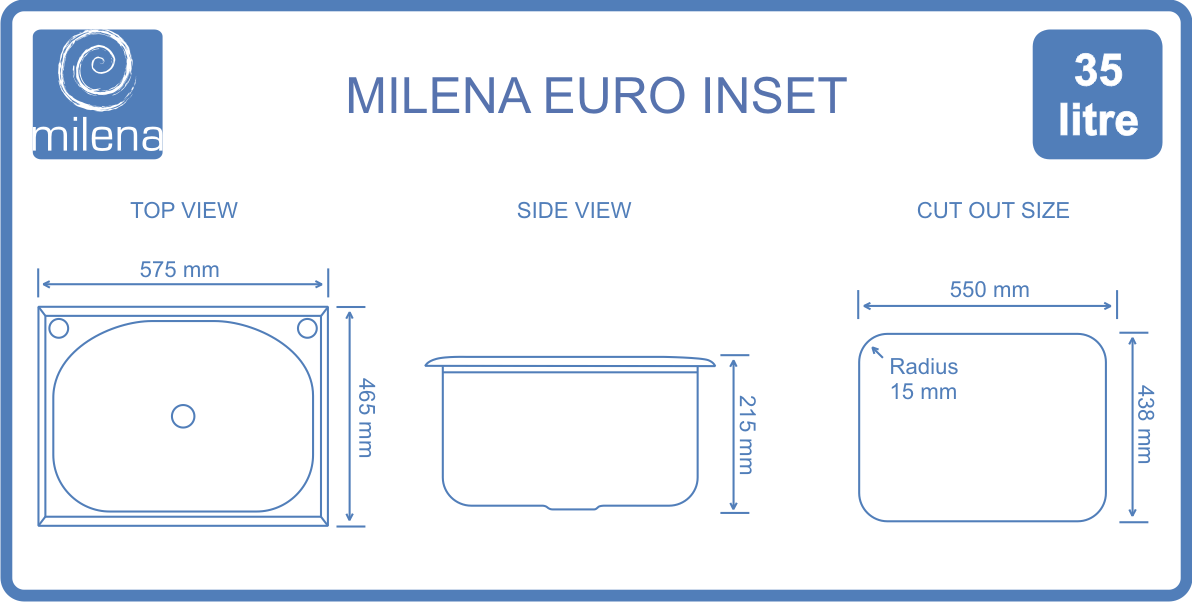 The sleek Euro 35 litre stainless steel tub suits a range of laundry requirements. With its unique shape, square-edging and all-over 'gunmetal' finish this tub is especially well suited to combination laundry / guest-toilet applications. Or perhaps where a little extra class is desired.